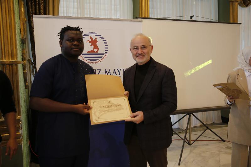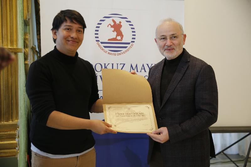 Programda daha sonra zelzele bölgesinde misyon alan 12 yabancı asıllı OMÜ öğrencisine, isimlerine dikilen fidanların sertifikaları verildi.