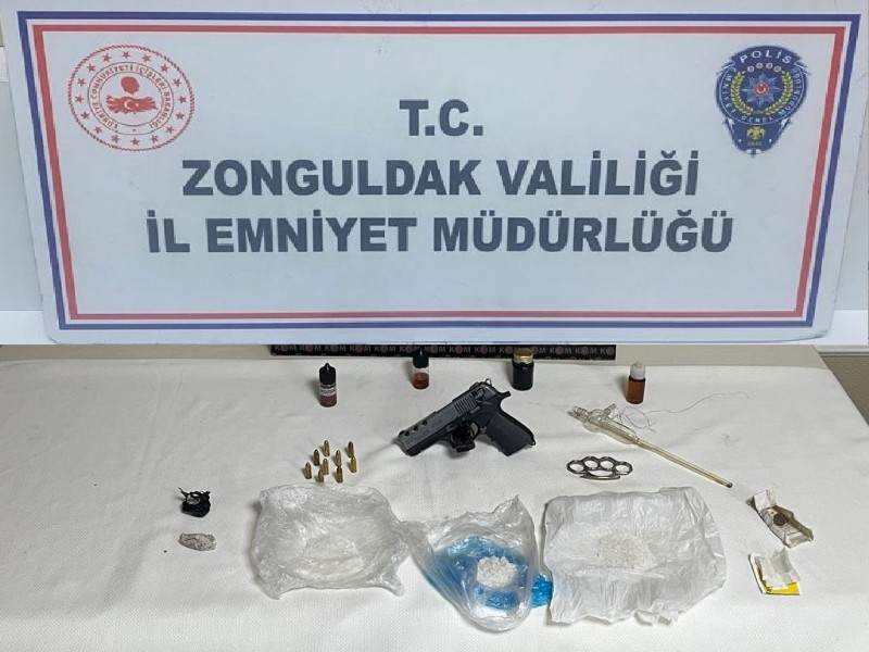 Emniyet Müdürlüğü 19.10.2023 tarihinde İl Merkezinde operasyon gerçekleştirdi. Kaçakçılık ve Organize Suçlarla Mücadele, Asayiş ve Narkotik Suçlarla Mücadele Şube Müdürlüğü ekipleri tarafından H.O.D ve M.S isimli 2 şüpheli yakalandı. Yapılan operasyon neticesinde ölümcül etkiye sahip 332 gram uyuşturucu madde, uyuşturucu madde kullanma aparatı, 1 adet ruhsatsız tabanca, 9 adet fişek ve 1 adet muşta ele geçirildi. H.O.D ve M.S isimli şüphelilere Uyuşturucu veya Uyarıcı Madde Ticareti Yapmak, Gasp ve 6136 Sayılı Kanuna Muhalefet suçlarından işlem yapılarak Zonguldak Cumhuriyet Başsavcılığına sevk edildi, 20.10.2023 tarihinde Mahkeme tarafından M.S isimli şüpheli Adli Kontrol Şartıyla serbest bırakılmış, H.O.D isimli şüpheli tutuklanarak cezaevine gönderilmiştir.