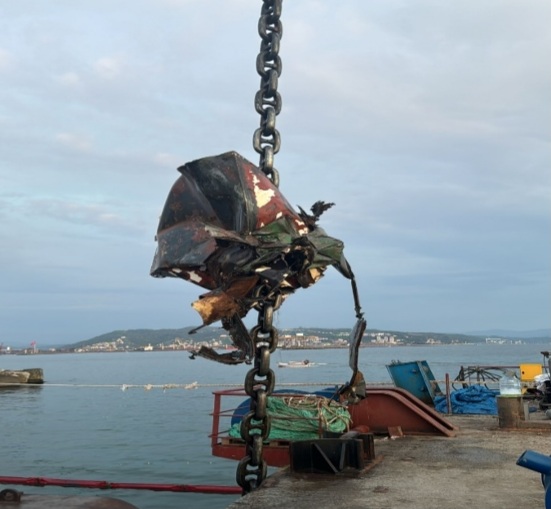 • Enkazın etrafı ve altı mümkün olduğunca tarandıktan sonra kıç parçadan zincir geçirilerek kesilmiş ve ikiye ayrılmıştır.