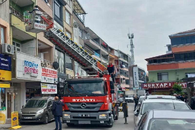 Kuşun, bir apartmanın 3. katında olduğunu öğrenen Yaman, itfaiyeden yardım istedi.