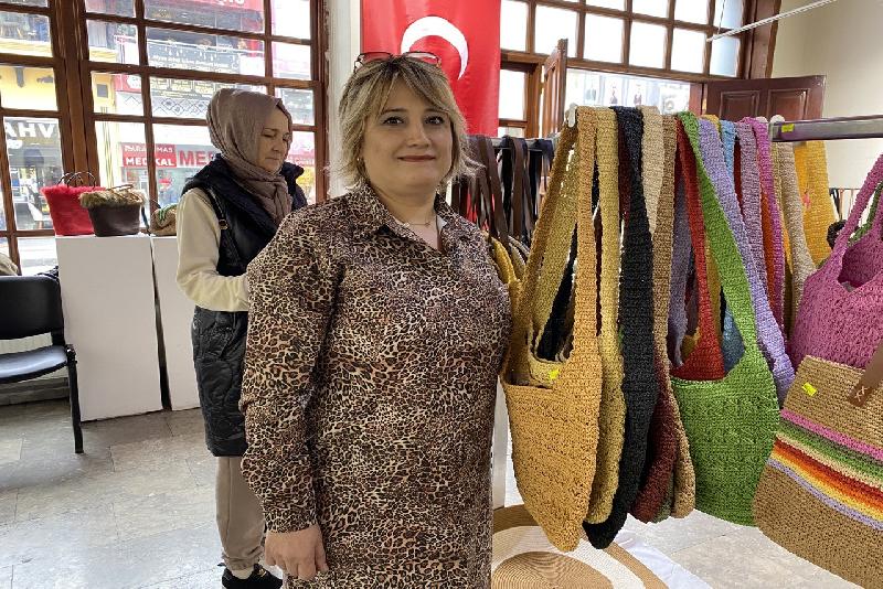 Nejla Özçelik, gazetecilere, hasır çanta üretimine hobi olarak başladığını söyledi.